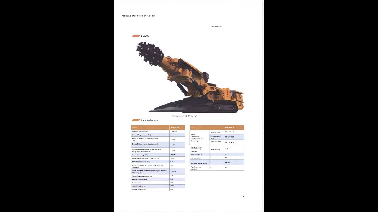 Kombajn chodnikowy do pokładów węgla/kamienia EBZ318H do potężnej zmechanizowanej maszyny do drążenia znanej w Chinach firmy SANY HEAVY EQUIPMENT CO. LTD, która jest szeroko stosowana do wydobyć minerałów, jak i układania tuneli w skałach.Dane Techniczne