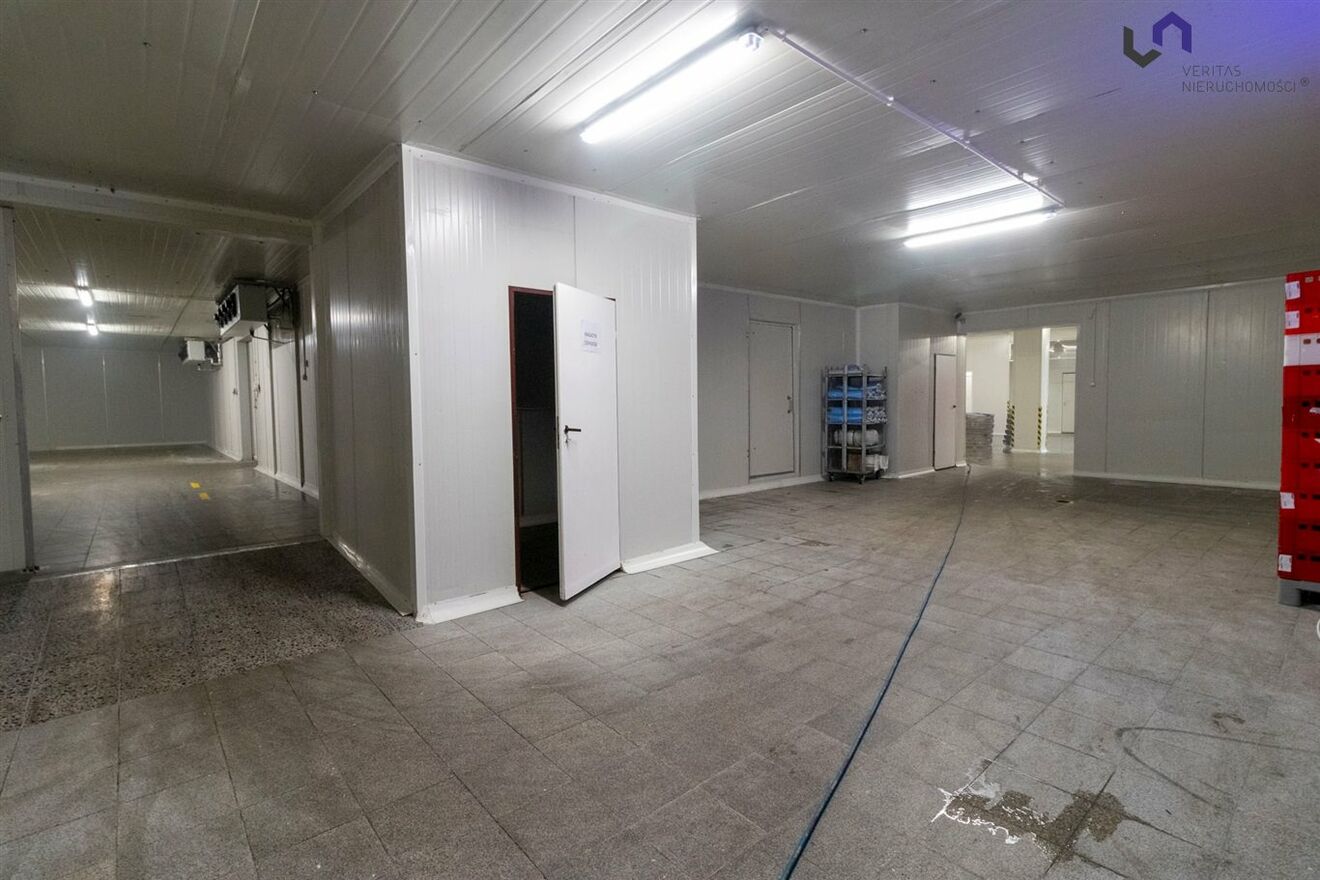 Pomieszczenia przetwórcze : chłodnie i mroźnie, wyposażone w agregaty chłodnicze umieszczone nad dachem.