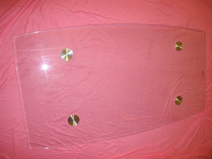 Szyba hartowana o długości 110 cm i szerokości 60 cm w najszerszym miejscu o lekko owalnym dłuższym boku..Może być użyta do wykonania stolika, półki lub innego sprzętu.