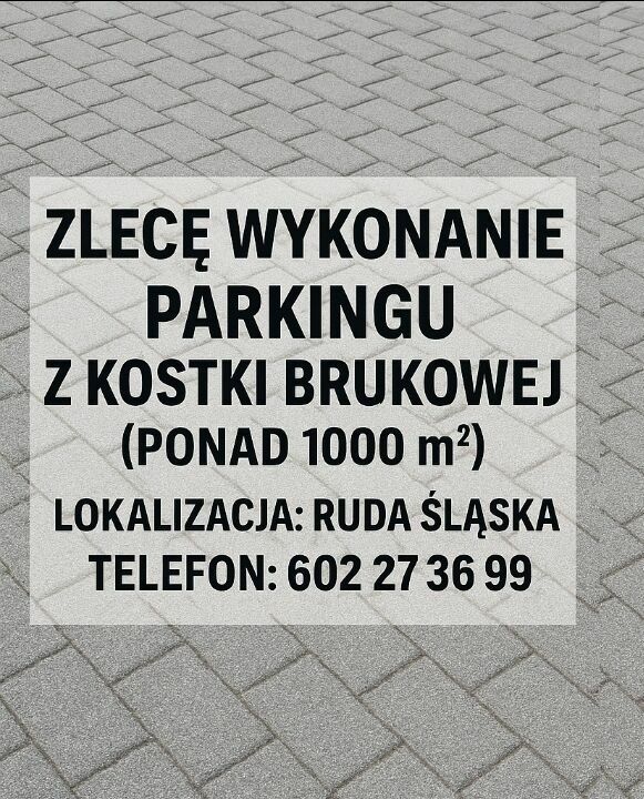 Zlecę wykonanie parkingu z kostki brukowej i częściowo geokratyPoszukuję doświadczonej ekipy do realizacji parkingu o powierzchni ok. 1000 m² wraz z pełną podbudową.